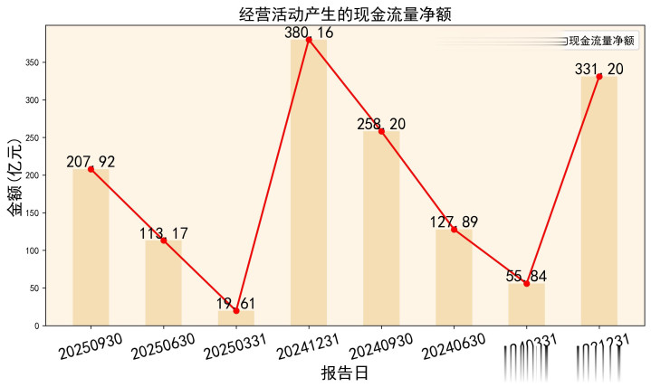 前三季度,经营活动现金流净额高达207.92亿元,同比大幅增长。经营现金流/净利润比率高达242%,说明净利润有充足的现金支撑,盈利质量很高。